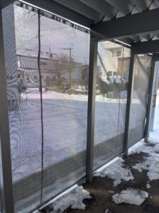 今回のお客様からも「横からの雪の吹き込みを何とかしたい」というご相談をいただき、防雪ネットの設置をご提案しました。